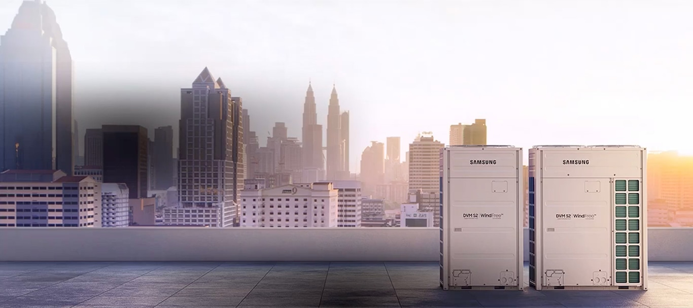 - استناداً إلى قياسات Samsung بالمقارنة بالطرازات بقوة 33.6 كيلووات من DVM S2 ووحدة خارجية تقليدية.