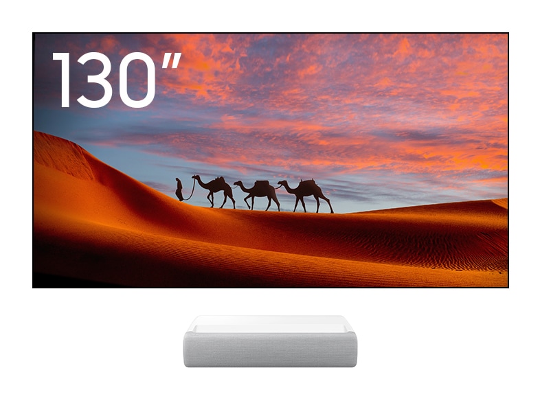 *Las imágenes son simuladas y solo tienen fines ilustrativos. Las especificaciones de la interfaz gráfica de usuario (GUI), que no afectan el rendimiento del producto, están sujetas a cambios sin previo aviso. *El producto real puede diferir de la imagen mostrada. Consulta nuestra galería de productos. *El proyector láser se puede proyectar en una pared plana, blanca o monótona brillante sin instalar una pantalla adicional. Para una experiencia mejor, se recomienda utilizar una pantalla dedicada al proyector de distancia ultracorta.