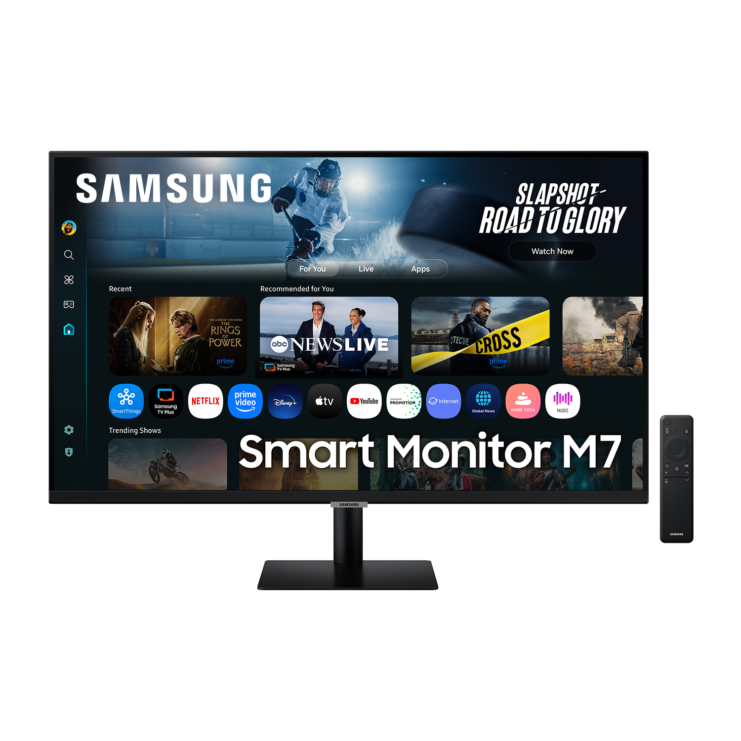 * Las especificaciones y la disponibilidad del mando a distancia pueden variar según la región. Go to feature - 3. * Las funciones, los servicios y la disponibilidad de las aplicaciones pueden variar según el país y la región.* Samsung TV Plus y Universal Guide pueden no estar disponibles en algunas regiones.* Algunas funciones pueden requerir suscripciones independientes.* La UI está sujeta a cambios sin previo aviso.* Este monitor inteligente no incluye un sintonizador de TV, que no es necesario para las aplicaciones de streaming.* Se requiere conexión a Internet.* Las especificaciones del mando a distancia varían según el país y la región.* La compatibilidad del control mediante teclado y ratón varía según la aplicación.* Para acceder a todas las funciones inteligentes, como los servicios basados en red, las aplicaciones (incluidos los juegos y los servicios de streaming) y la funcionalidad de hogar inteligente, es necesario disponer de una Samsung Account. Sin iniciar sesión, la funcionalidad se limita a dispositivos externos, por ejemplo, a través de HDMI. Puedes registrarte para obtener una Samsung Account gratuita en https://account.samsung.com. Se aplican términos y condiciones. Go to feature