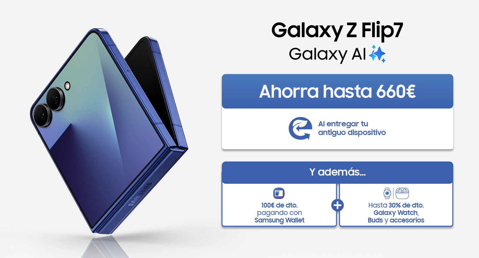• Añade un Galaxy Watch, Buds, Ring o accesorios con hasta un 30% de descuento.3