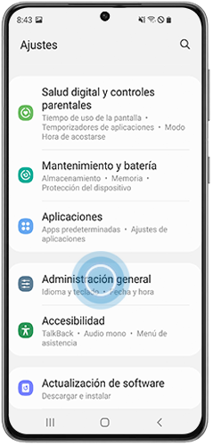 Desplázate hacia la opción de “Administración general” y pulsa sobre ella.
