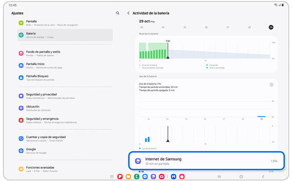 Si tu Galaxy Tab tiene poca batería, las aplicaciones que requieren más energía pueden hacer que se apague inesperadamente.