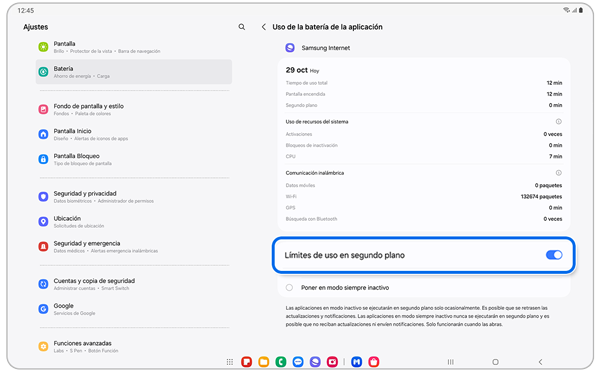 Nota: Las actualizaciones y notificaciones pueden retrasarse si habilitas los límites de uso en segundo plano.