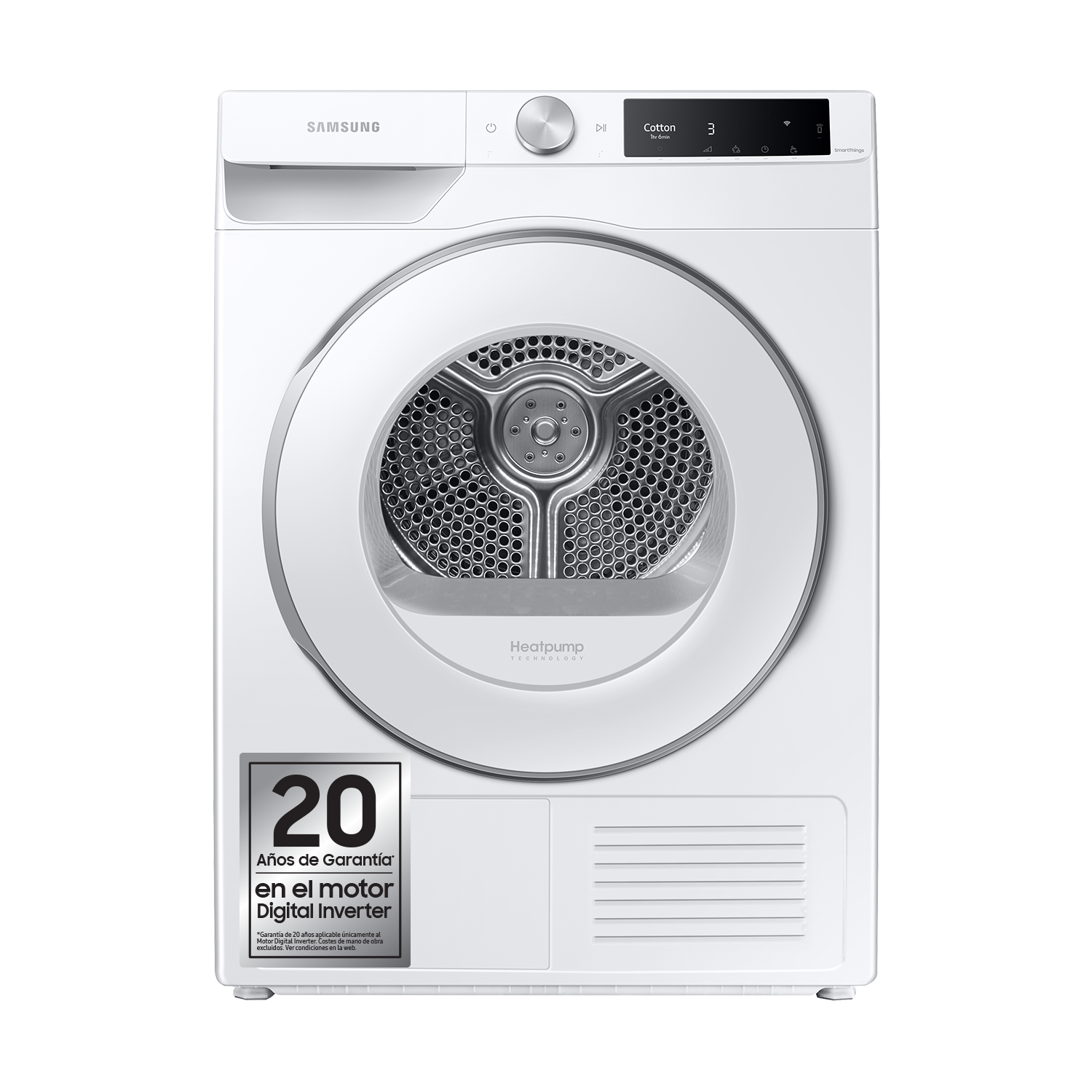 *Garantía otorgada por Samsung Electronics Iberia, S.A.U, aplicable únicamente a averías por defecto de fabricación del Digital Inverter Motor del producto adquirido en España, por un período de veinte (20) años a partir de la fecha de entrega/compra (aplicable a compras realizadas a partir del 1 de julio de 2022. Si ha sido adquirida antes de esta fecha, la pieza dispone de 10 años de Garantía). La garantía cubre únicamente la pieza, no incluye mano de obra, ni desplazamiento, ni carga de gas. La garantía no afecta a los derechos del consumidor en relación a la garantía legal. Para ejercer la garantía, es indispensable presentar justificación documental de la entrega/compra del producto y cumplir el procedimiento indicado en la tarjeta de garantía. Las reparaciones deberán ser efectuadas por Servicios de Asistencia Técnica Oficial de Samsung o distribuidores autorizados.