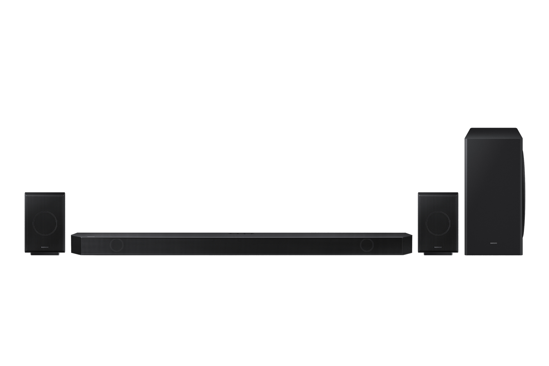 Tämä soundbar, jossa on yhdeksän kanavaa, yksi subwoofer-kanava ja neljä ylöspäin suunnattua kanavaa, ympäröi kuulijan äänellä. Uudet takakaiuttimet suuntaavat äänen heijastumaan katosta, mikä parantaa surround-äänielämystä. Se sopii täydellisesti yhteen QLED-television kanssa.