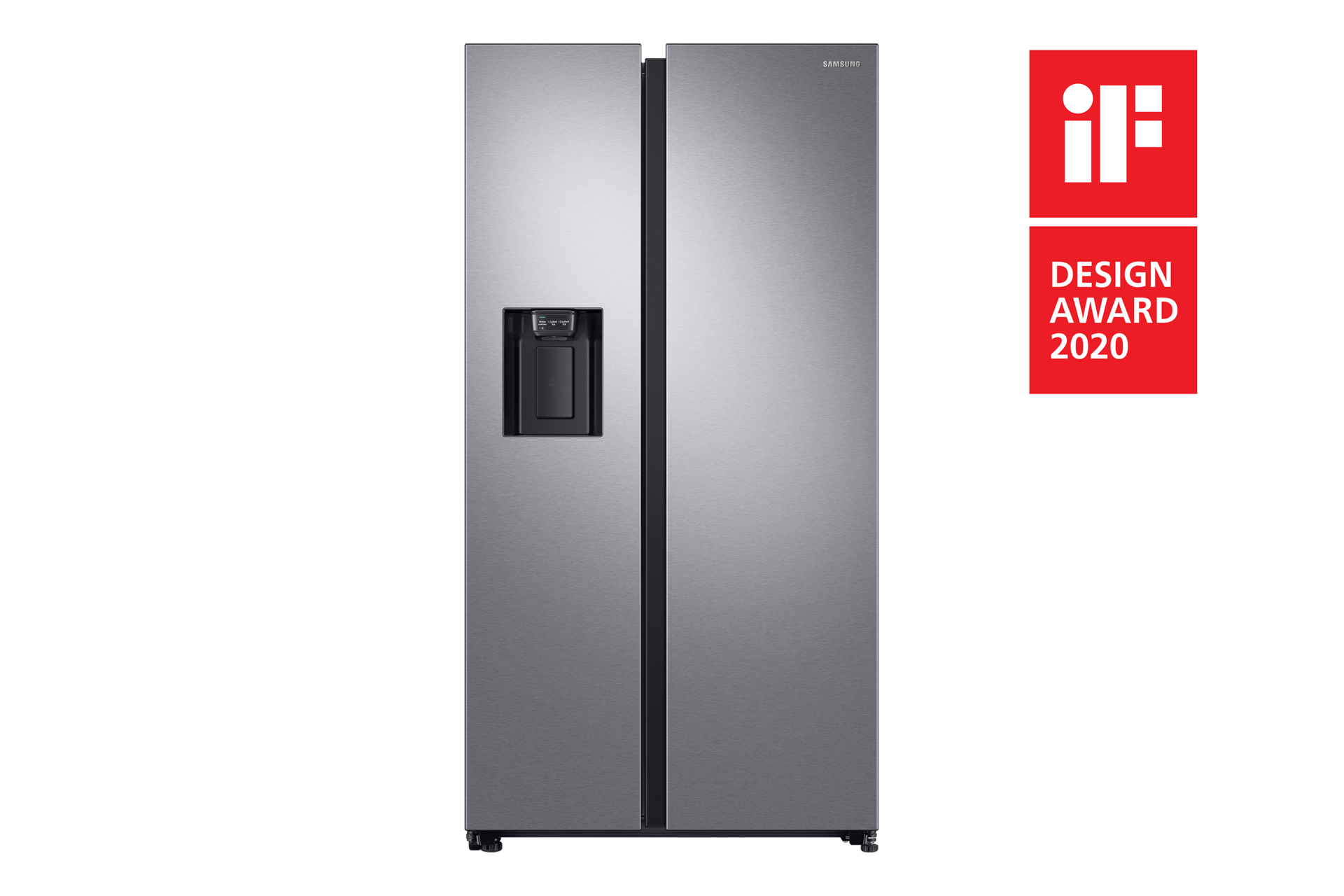 Jää- ja vesiannostelija on sijoitettu saumattomasti oven etuosaan täydentämään minimalistista muotoilua.