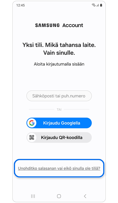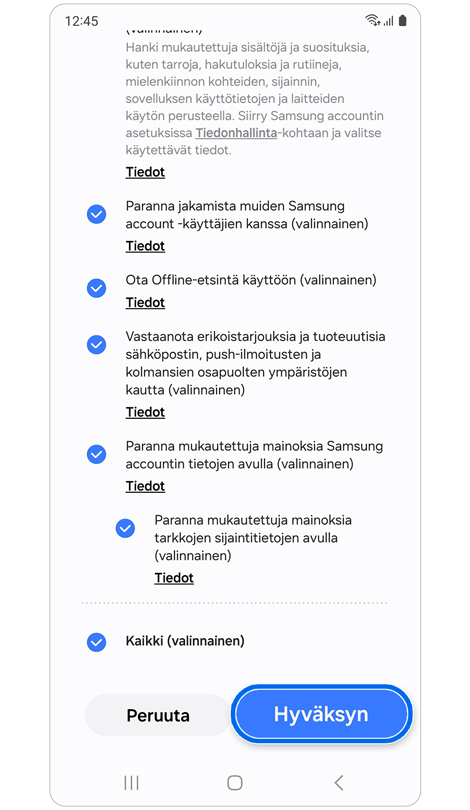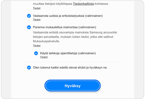 Huomio: Samsung account -tilin rekisteröintiin vaadittava vähimmäisikä voi vaihdella maittain/alueittain.