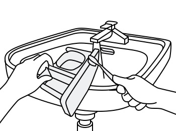 - Liuota pesuaine lämpimällä vedellä (noin 40 °C). (Käytä pesuainetta oikea määrä.)