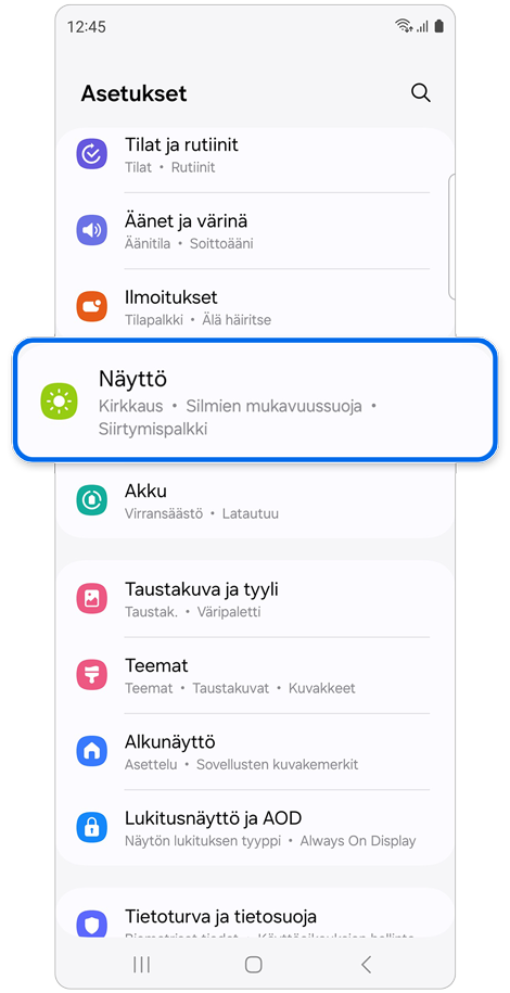 Galaxy Z Fold ja Z Flip -sarjan päänäytön kiinnitetty suojakalvo on virallinen kalvo taitettaville laitteille. Jos poistat päänäytön suojakalvon mielivaltaisesti tai kiinnität ei-virallisen kalvon, se voi aiheuttaa kosketuspoikkeavuuksia, näytön vaurioita jne. Jos tarvitset suojakalvon vaihtamista käytön aikana, vieraile huoltokeskuksessa saadaksesi apua.