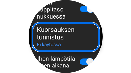 Aseta “Kuorsauksen tunnistus”