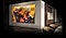 Perinteinen television kehys näkyy selkeästi. Liikkuva valoanimaatio korostaa sitä ja kun kamera zoomaa kauemmaksi, kehys poistetaan ja punainen kanjoni tulee näkyviin ilman häiritseviä television kehyksiä.