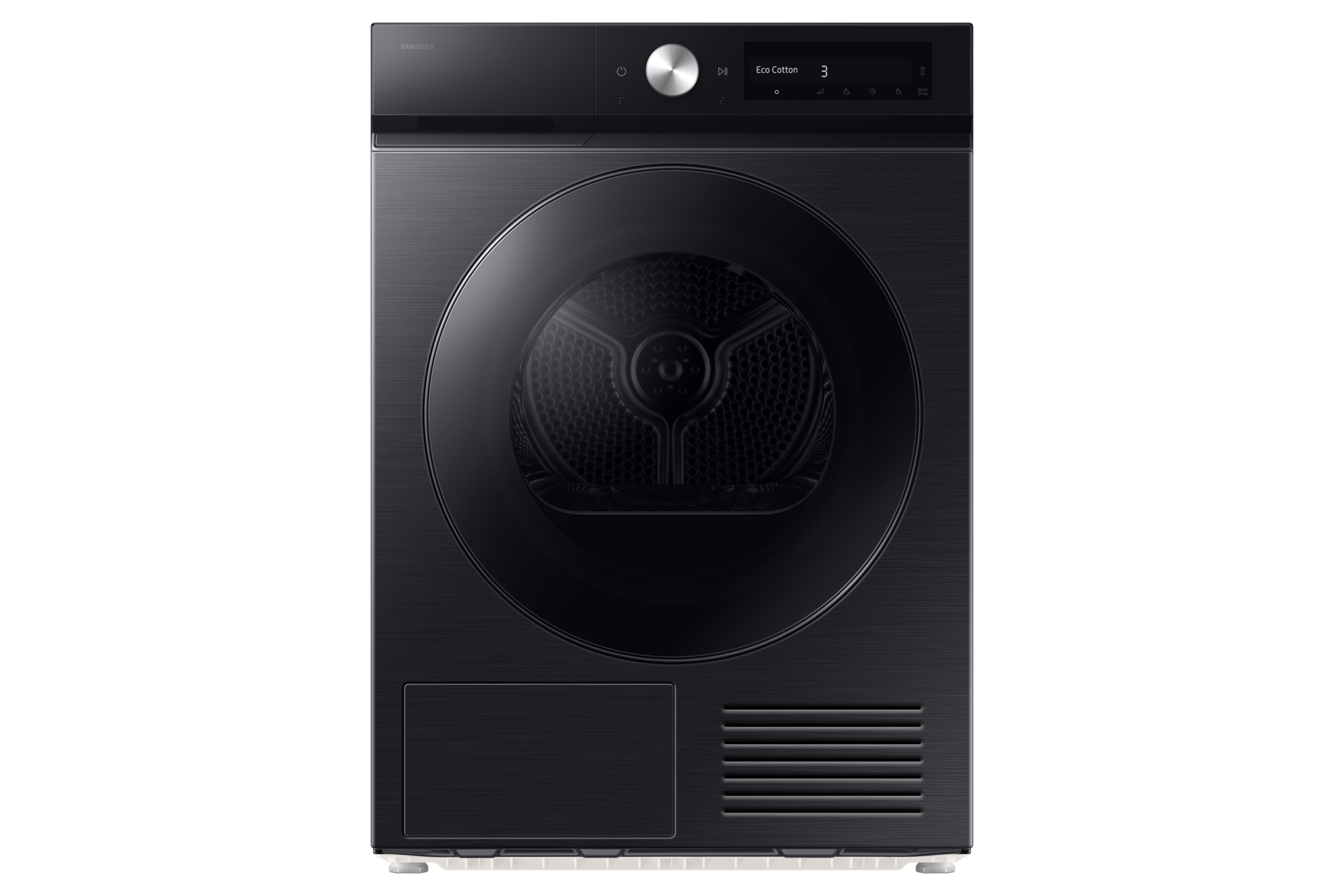 * Perustuu tekoälyn luomaan algoritmiin. Tulokset voivat vaihdella todellisten käyttöolosuhteiden mukaan.** Perustuu DV9400B-mallin sisäiseen testaukseen puuvilla- ja AI Dry+ -ohjelmilla 2 kg sekapyykin kuivaamiseen 43 %:n kosteuspitoisuudella, verrattuna Samsungin tavalliseen DV5000T-malliin. Tulos: energiankulutus vähenee 10 %. Tulokset voivat vaihdella todellisten käyttöolosuhteiden mukaan.Nopea ja tehokas