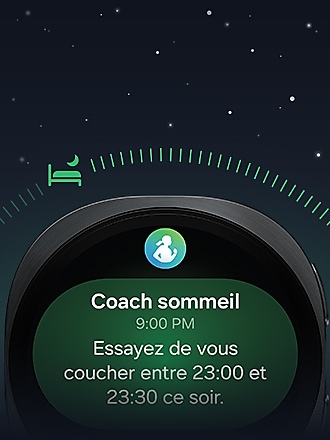 Vous vous demandez pourquoi vous êtes fatigué, même après des heures de sommeil ? Suivez vos habitudes de sommeil avec Galaxy Watch ou Ring et recevez un Coaching sommeil personnalisé pour passer de meilleures journées et nuits. 1, 2, 3, 4, 5, 6, 7