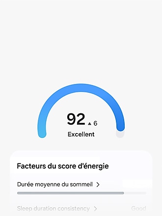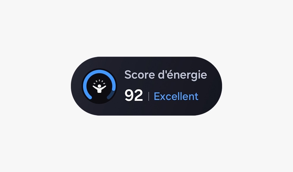 Qu’est-ce que le Score d’énergie sur Samsung Health ?Le Score d’énergie est un indice qui peut aider à montrer votre préparation physique et mentale actuelle en analysant les activités physiques d’hier et les schémas de sommeil. Suivez votre Score d’énergie et aidez à développer de meilleures habitudes de santé et habitudes de sommeil pour vous réveiller prêt à affronter la journée.7