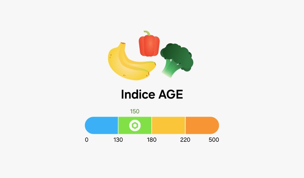 Qu’est-ce que l’indice AGE ?L’indice des AGE (produits de glycation avancée) est un indicateur de l’âge biologique et est fortement influencé par les habitudes alimentaires et de vie. Portez la Galaxy Watch compatible pendant votre sommeil pour aider à mesurer votre indice d’AGE.18,19