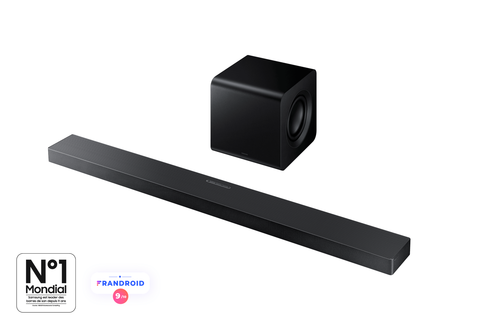 La technologie Q Symphony est compatible avec les téléviseurs Samsung à partir de 2021 (TV 2021 AU7000 et plus, TV 2022 BU8000 et plus, TV 2023 CU7000 et plus, TV 2024 DU7000 et plus et TV 2025 U80 00 F et plus & The Frame 2022 2025). Elle nécessite une connexion HDMI, optique ou Wi-Fi au téléviseur.