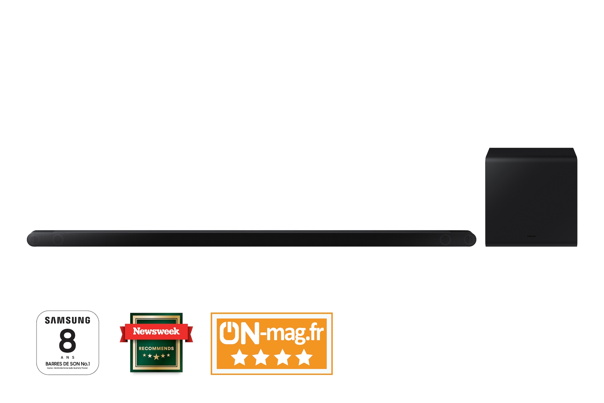 *La technologie Q-Symphony est compatible avec une sélection de TV Samsung. *Les fonctionnalités ne sont pas compatibles avec tous les téléviseurs Samsung. Vérifiez les caractéristiques produit par modèle de téléviseur. * La fonction requiert une connexion HDMI, optique ou Wi-Fi au téléviseur.Qualité sonore