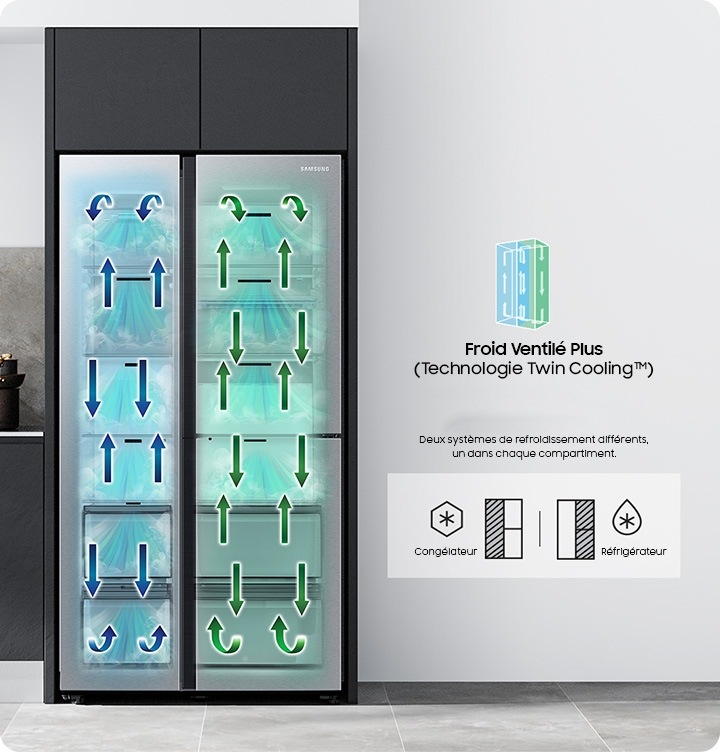 Avec 2 systèmes de réfrigération indépendants, le Froid Ventilé Plus* maintient un taux d’humidité optimal dans le réfrigérateur et préserve ainsi la qualité des aliments même les plus sensibles. Tous les avantages du Froid Ventilé, avec plus d’humidité !