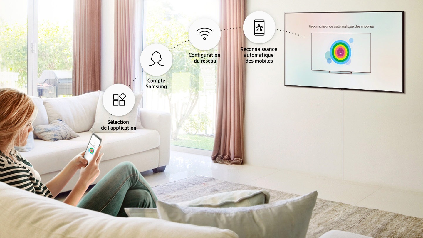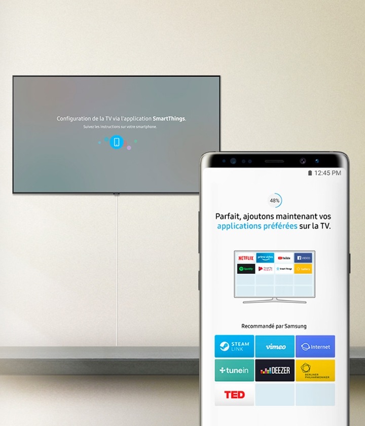 Configurez votre Smart TV à partir de votre mobile avec un processus d'installation ultra simple. La plupart des étapes sont automatiques en utilisant les informations de votre mobile.