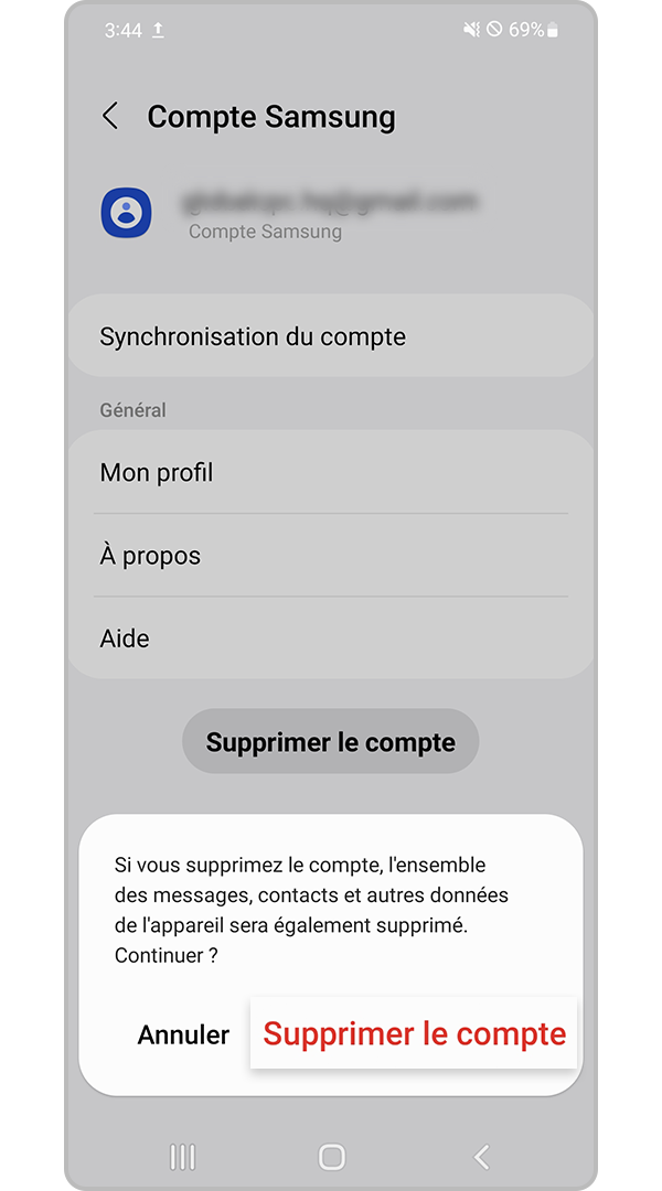Supprimer votre compte Samsung