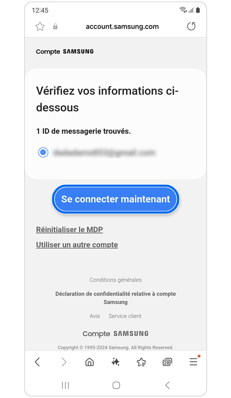 Pour vous connecter à votre compte Samsung via votre compte Google, procédez ainsi :