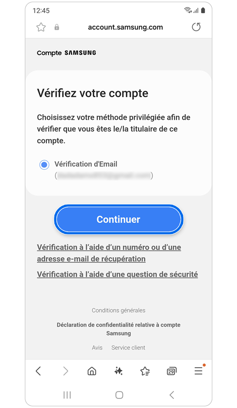 Vérifier votre compte Samsung par email