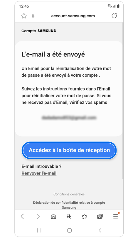 * La réinitialisation de votre mot de passe via un email de récupération nécessite l'enregistrement préalable de cette adresse dans les paramètres de votre compte Samsung.