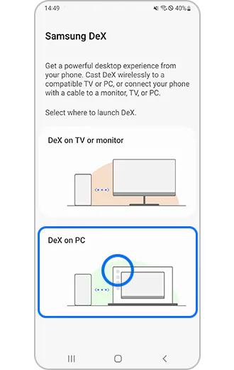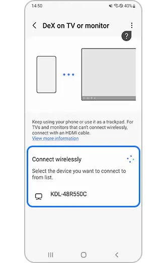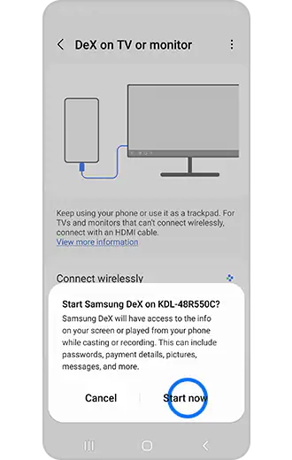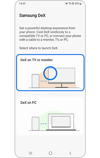 Connecter un téléviseur ou un moniteur à Samsung DeX sans fil