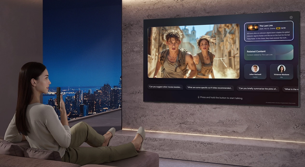 D’un simple clic, votre téléviseur devient encore plus intelligent. Demandez instantanément des informations sur le contenu que vous regardez et recevez des recommandations personnalisées ou des détails approfondis, comme la biographie des acteurs et des informations associées. Profitez d’une expérience de visionnage plus riche et interactive — simplement en parlant à votre téléviseur.