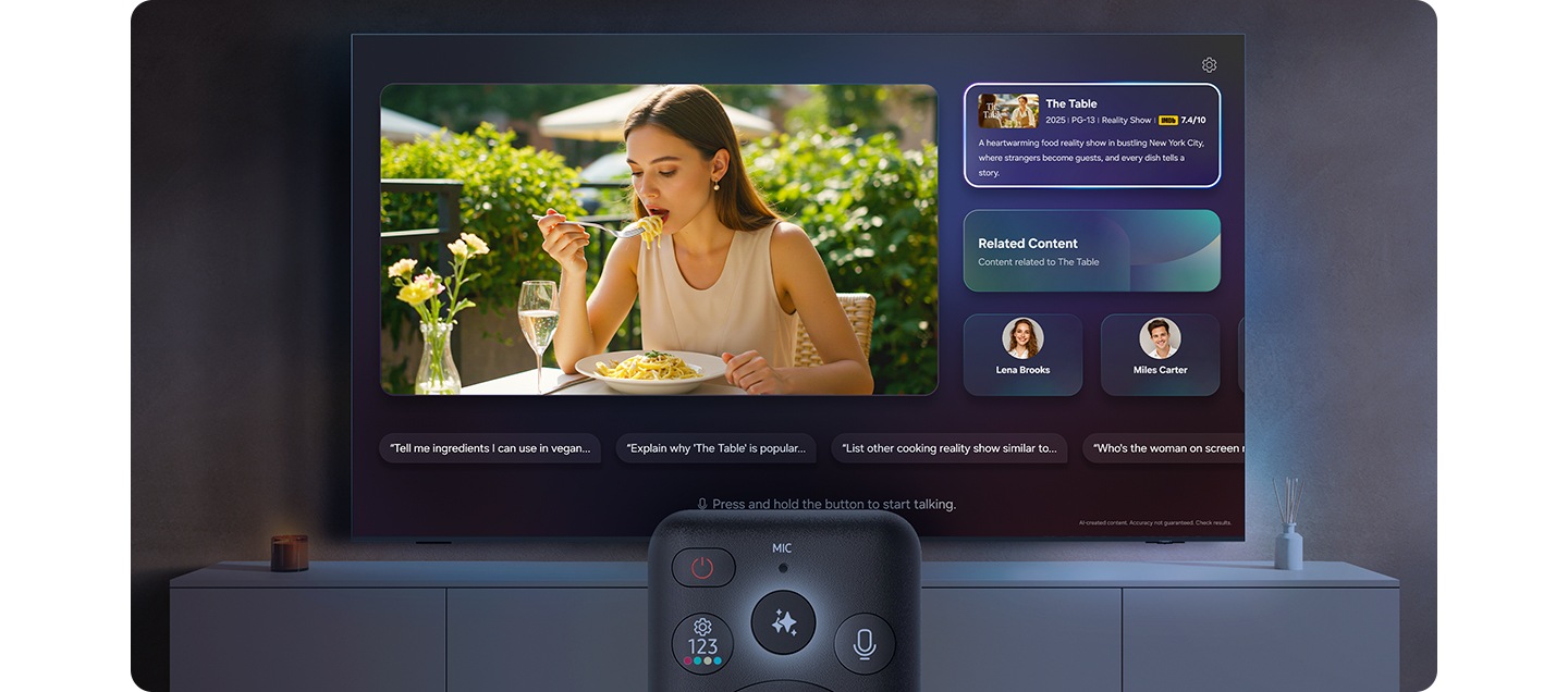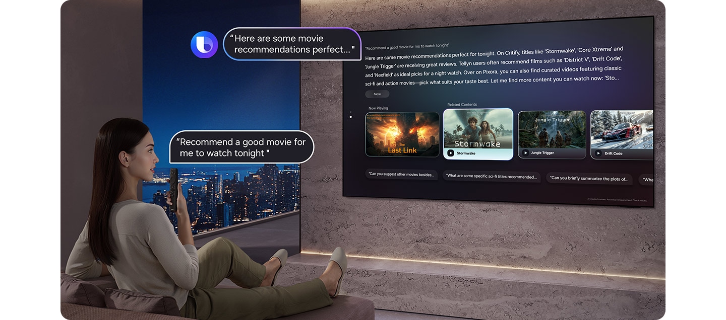 ou si vous voulez tamiser les lumières, votre téléviseur Samsung AI comprend et répond naturellement.