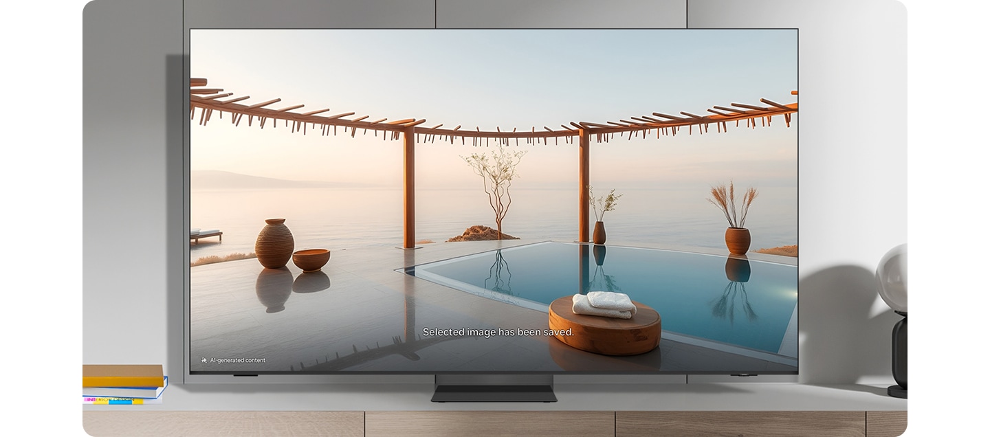7. Generative Wallpaper = fond d'écran génératif : Le nombre de tentatives de génération autorisées par jour peut être limité. L'image représentée sur l'écran du téléviseur est une image générée par IA créée via la fonction Generative Wallpaper. Cette fonctionnalité n'est pas prise en charge sur les modèles OLED.