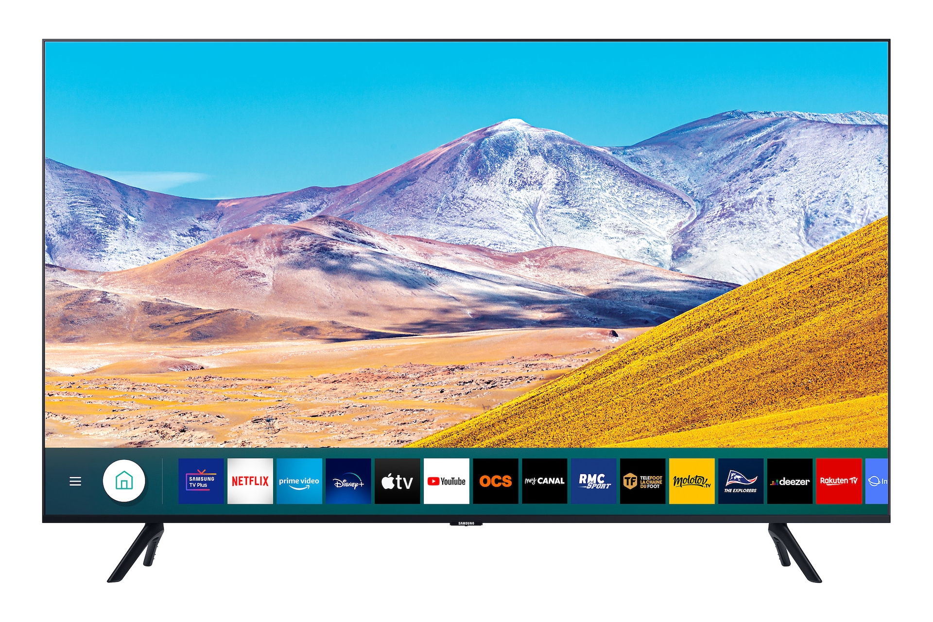 * Samsung peut à tout moment et à sa seule discrétion, sans notification ni préavis, modifier ou suspendre les Services et/ou cesser de fournir les Services. Ce service peut ne pas être encore disponible au moment de l’achat de ce produit. * Les commandes vocales Bixby reconnaissent l'anglais (US/UK), le français, l'espagnol, l'allemand, l'italien, le chinois et le coréen. Tous les accents, dialectes et expressions ne sont pas reconnus. * Amazon, Alexa et tous les logos associés sont des marques commerciales de Amazon.com, Inc. ou de ses filiales. * Google et Google Home sont des marques commerciales de Google LLC. * Le pilotage mains-libres est pris en charge par certains modèles de téléviseurs Samsung. * Certaines applications disponibles sur les Smart TV Samsung sont éditées par des tiers et sont susceptibles d’être soumises à un abonnement payant et de changer, d’évoluer ou d’être arrêtées selon les choix et décisions de leurs éditeurs respectifs. Le contenu, les services de télévision et les capacités illustrés peuvent ne pas être disponibles dans toutes les régions et territoires.