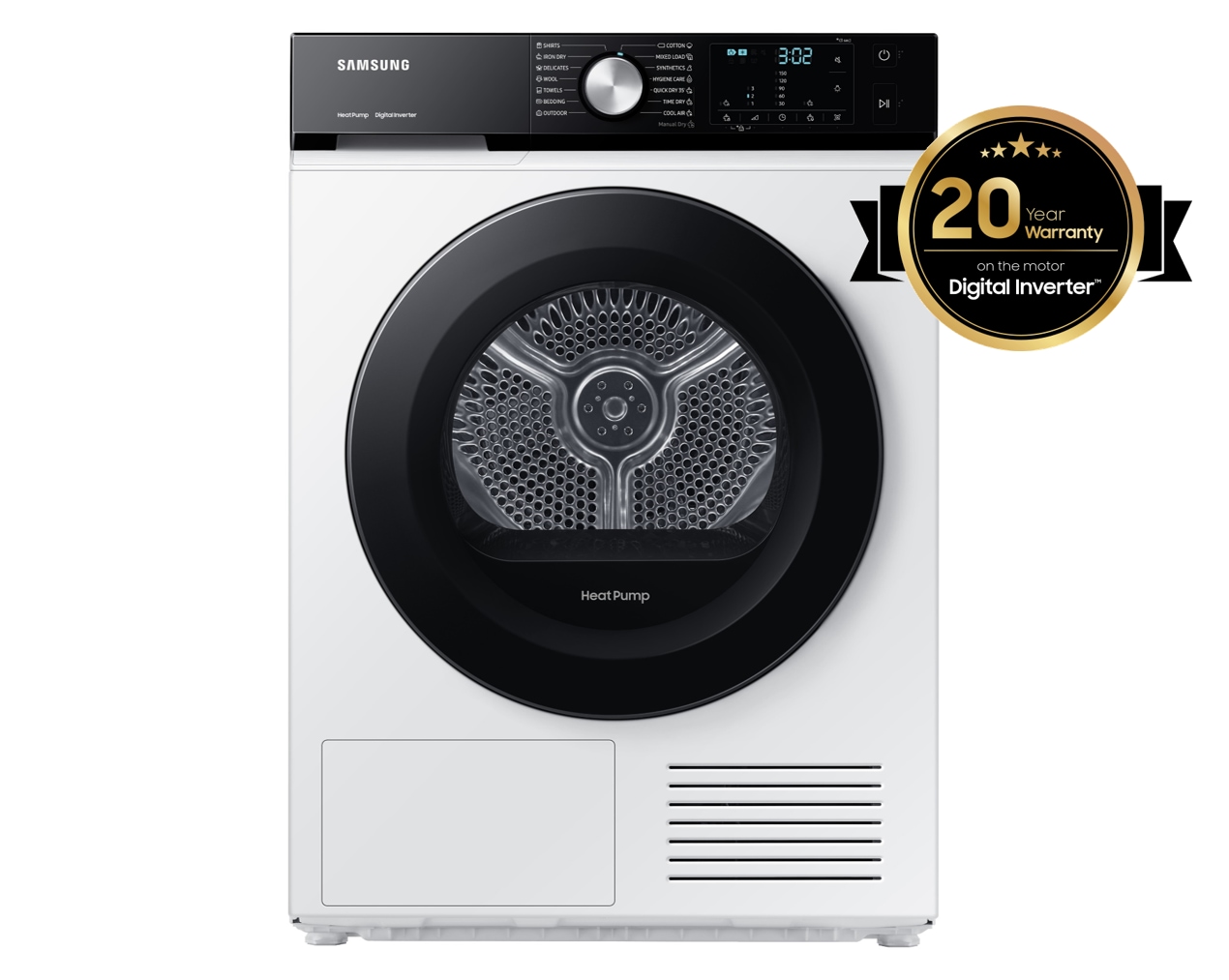 En recyclant l'air chaud et en le chauffant à une température inférieure à un sèche-linge à condensation classique, la technologie de pompe à chaleur "Heat Pump Samsung" respecte votre linge et vous permet de faire des économies d'énergie considérables* (Classe énergétique A+++).