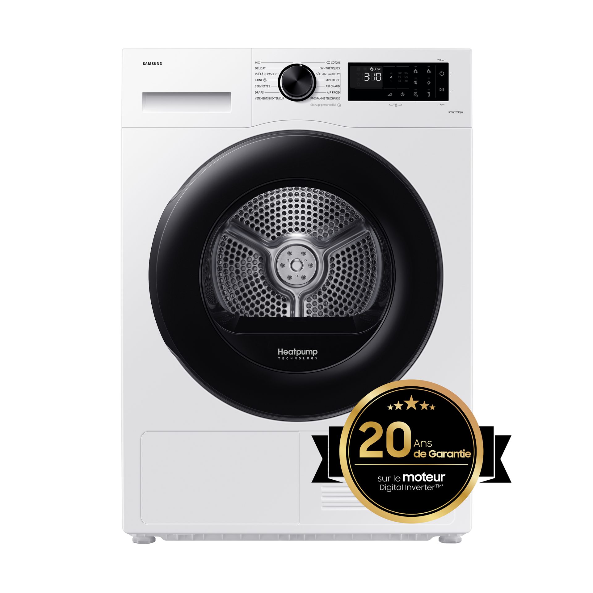 En recyclant l'air chaud et en le chauffant à une température inférieure à un sèche-linge à condensation classique, la technologie de pompe à chaleur "Heat Pump Samsung" respecte votre linge et vous permet de faire des économies d'énergie considérables*