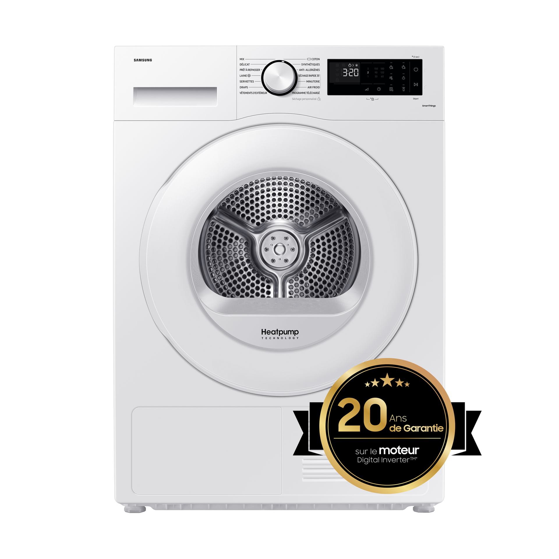 En recyclant l'air chaud et en le chauffant à une température inférieure à un sèche-linge à condensation classique, la technologie de pompe à chaleur "Heat Pump Samsung" respecte votre linge et vous permet de faire des économies d'énergie considérables* (Classe énergétique A+++).