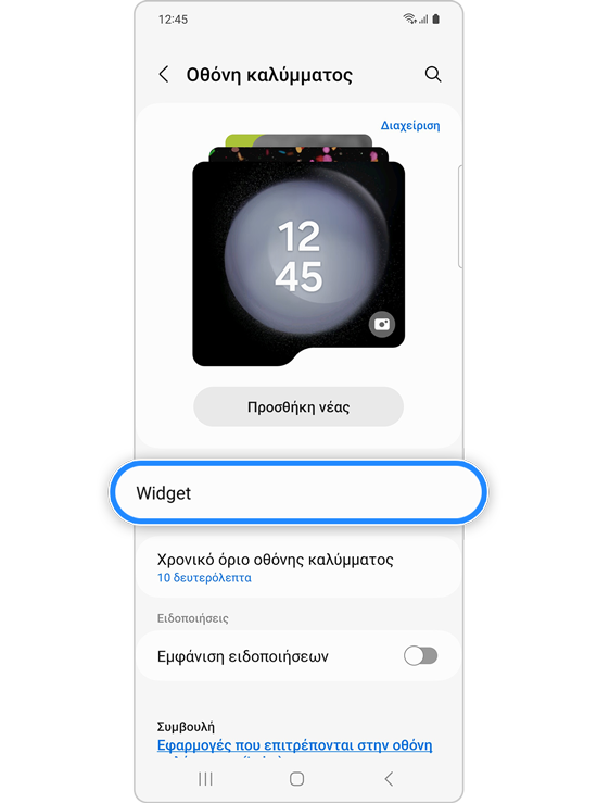 Σημείωση: Τα διαθέσιμα widgets και οι ρυθμίσεις ενδέχεται να διαφέρουν ανάλογα με τον πάροχο ασύρματων υπηρεσιών, την έκδοση λογισμικού και το μοντέλο της συσκευής.