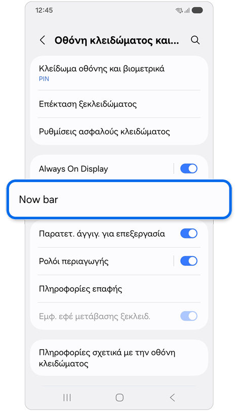 - Η Now bar εμφανίζεται μόνο όταν είναι ενεργοποιημένες τόσο οι ειδοποιήσεις οθόνης κλειδώματος όσο και οι ειδοποιήσεις εφαρμογών.