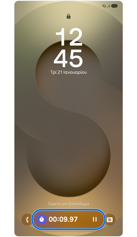 Με το Now bar μπορείτε να ελέγχετε ορισμένες εφαρμογές που εκτελούνται στη συσκευή σας, όπως η Μουσική, ο Χρονοδιακόπτης ή το Χρονόμετρο, από την οθόνη κλειδώματος.