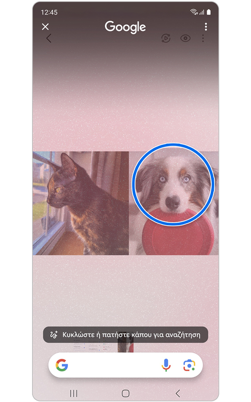 Αυτή η μοναδική λειτουργία σάς επιτρέπει να κάνετε γρήγορη αναζήτηση στο διαδίκτυο για στοιχεία που σας ενδιαφέρουν σε μια εικόνα ή κείμενο χωρίς να αλλάξετε εφαρμογές ή να πληκτρολογήσετε αυτό που ψάχνετε. Το μόνο που χρειάζεται να κάνετε είναι να χρησιμοποιήσετε το δάχτυλό σας ή ένα S Pen για να κυκλώσετε το αντικείμενο ή το κείμενο που σας ενδιαφέρει και θα ξεκινήσει αυτόματα μια αναζήτηση. Αυτή η δυνατότητα λειτουργεί σε όλες τις εφαρμογές που επιτρέπουν την αποτύπωση οθόνης.