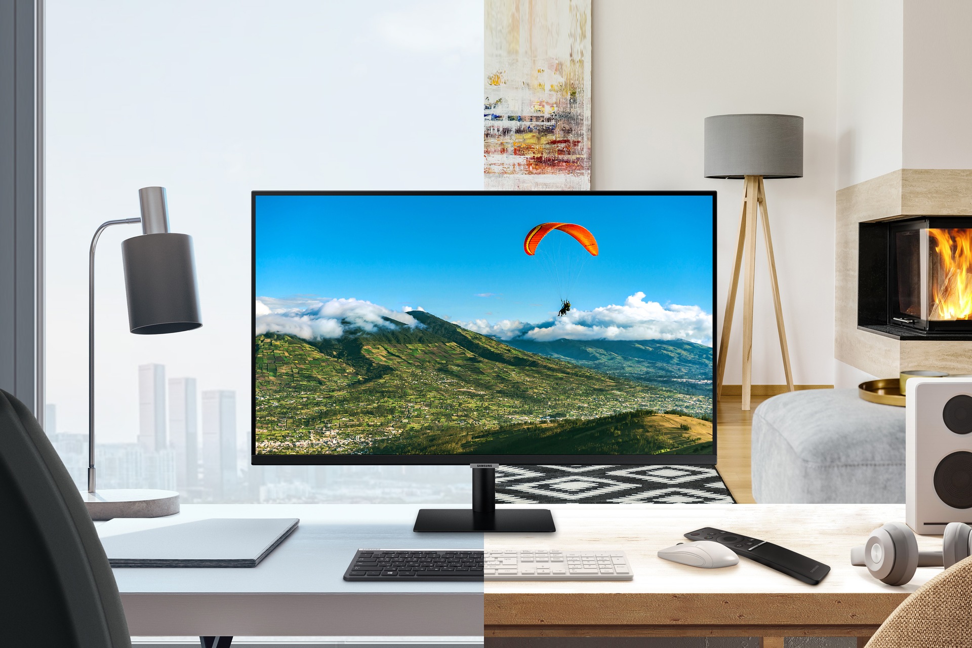 透過內置語音助手,包括 Bixby、Amazon Alexa 和 Google Assistant,你可說出指令去聲控顯示器,從而自由地在應用程式之間自由切換、操控影片等。