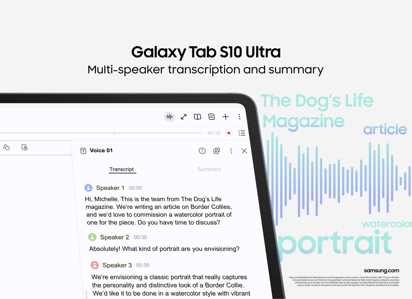 - 憑著筆記助手Note Assist及S Pen,用戶能夠輕鬆在大屏幕上摘錄筆記。透過Galaxy AI支援的轉錄及生成摘要功能,用戶能夠更高效地處理學校作業、摘錄筆記、以及編寫個人日誌。透過PDF翻譯功能,Galaxy Tab S10系列能夠直接於PDF文件上翻譯內容,並取代原來文字的位置。而手寫輔助功能亦能有效整理雜亂的手寫筆記。