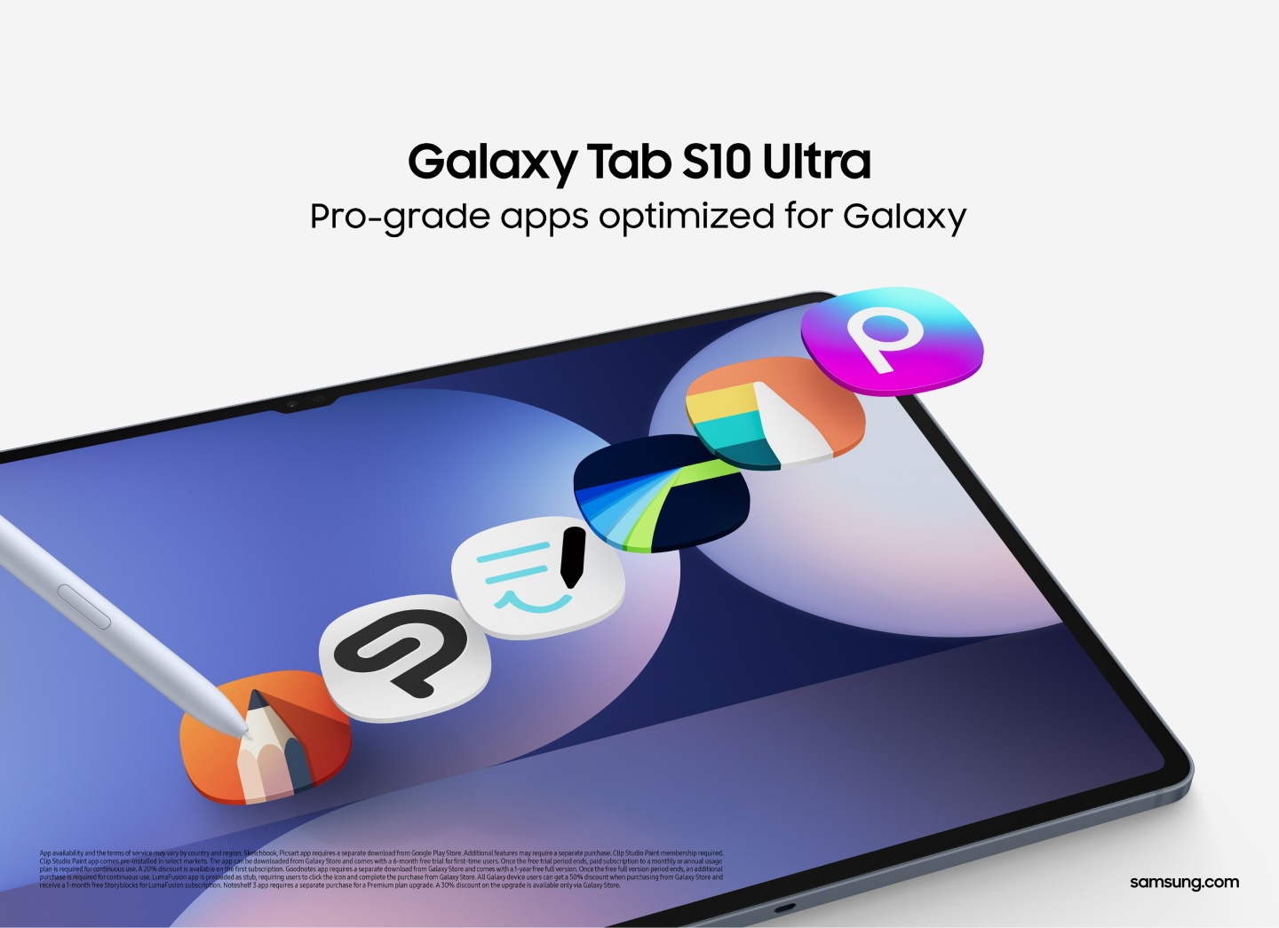 Galaxy Tab S10 系列擴展了 Galaxy 獨特的連接體驗和第三方應用生態,新增及加強了不少應用程式。Galaxy Tab S10 系列支援各種常用的第三方應用程式,包括Goodnotes、LumaFusion、Noteshelf 3、Clip Studio Paint、Picsart 和 Sketchbook。用戶能夠在 LumaFusion 編輯影片時輕鬆調教影片速度並添加戲劇性的視覺效果,或透過Picsart的AI設計工具無縫創作社交媒體內容。透過 Galaxy Tab S10 系列豐富的第三方應用生態,每個用戶都能找到最適合自己使用的應用程式。