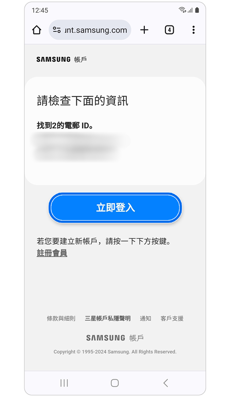 您的三星帳戶 ID 可以透過您的電話號碼或電子郵件 ID 提示取得。