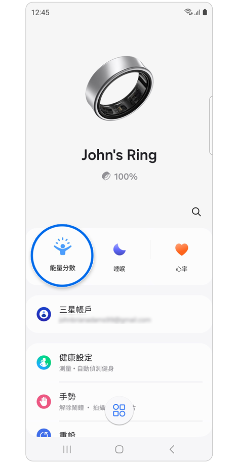 * 如果您的戒指已連接到手機,您可以在 Galaxy Wearable 應用程式中查看戒指的剩餘電池電量。