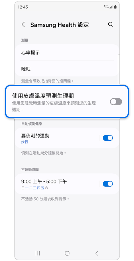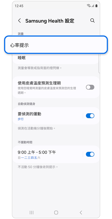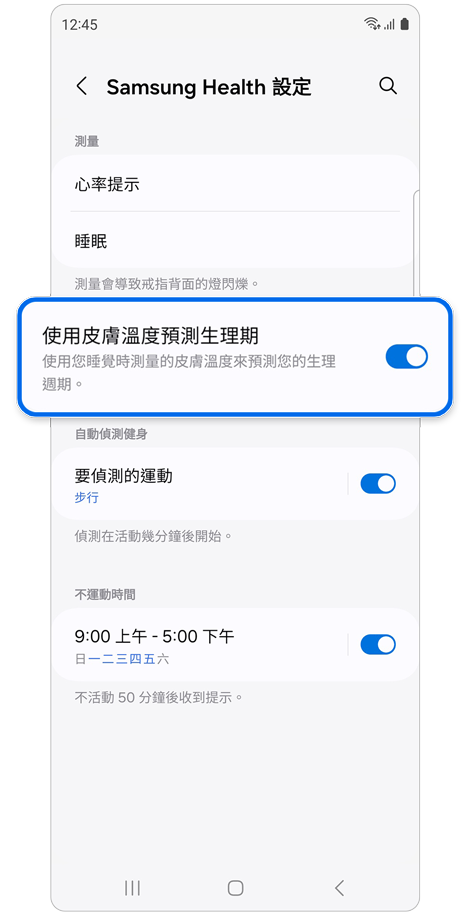 Galaxy Ring 透過持續的詳細測量和分析各種生命體徵和活動模式來幫助您管理身體狀況。測量所得的數據將定期與 Smart Health 應用程式同步。