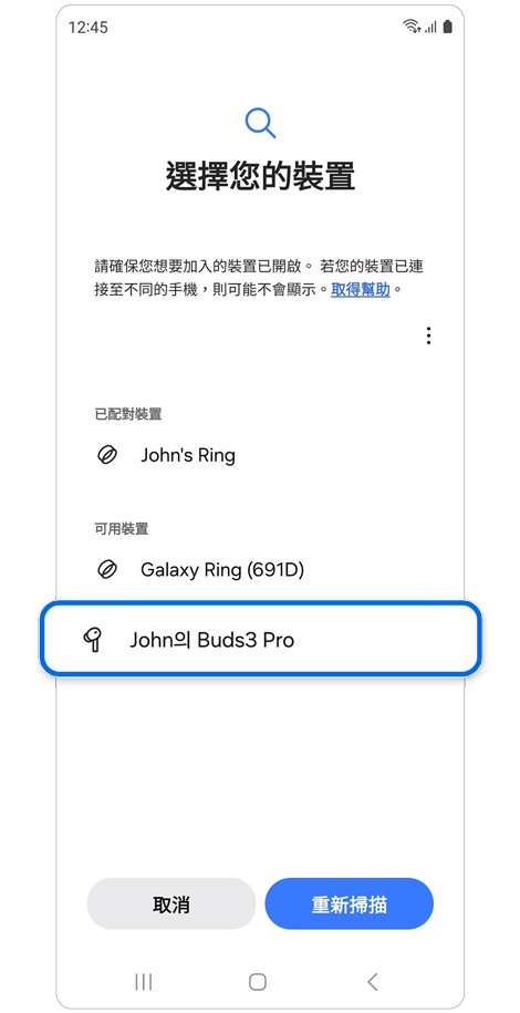 - 開啟 Galaxy Wearable 應用程式 > 選擇您的 Galaxy Buds > 點選配對。
