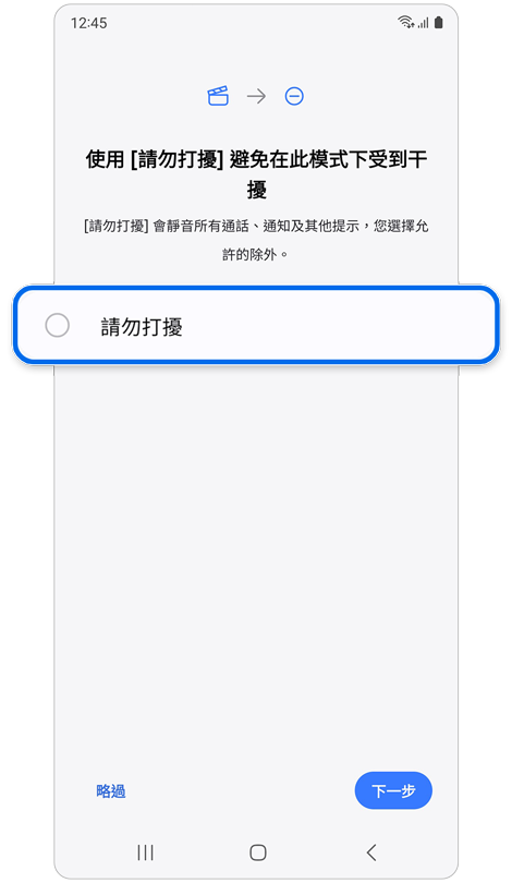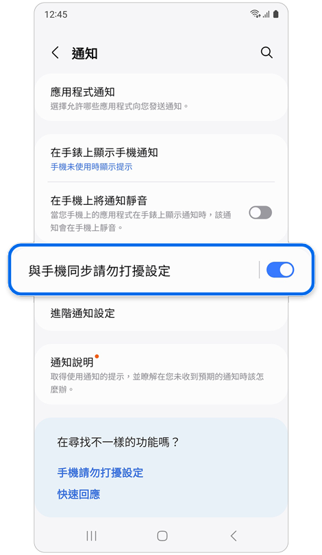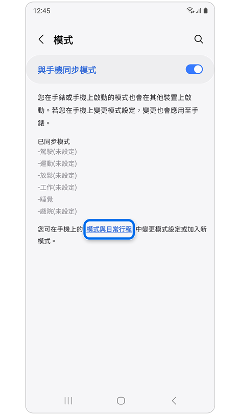 您必須使用 Galaxy Wearable 設定所有其他靜音模式,然後才能使用 Galaxy Watch 啟動它們。