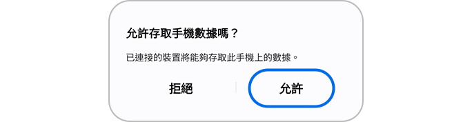 步驟 2. 當允許存取手機數據嗎訊息出現時,點選允許。