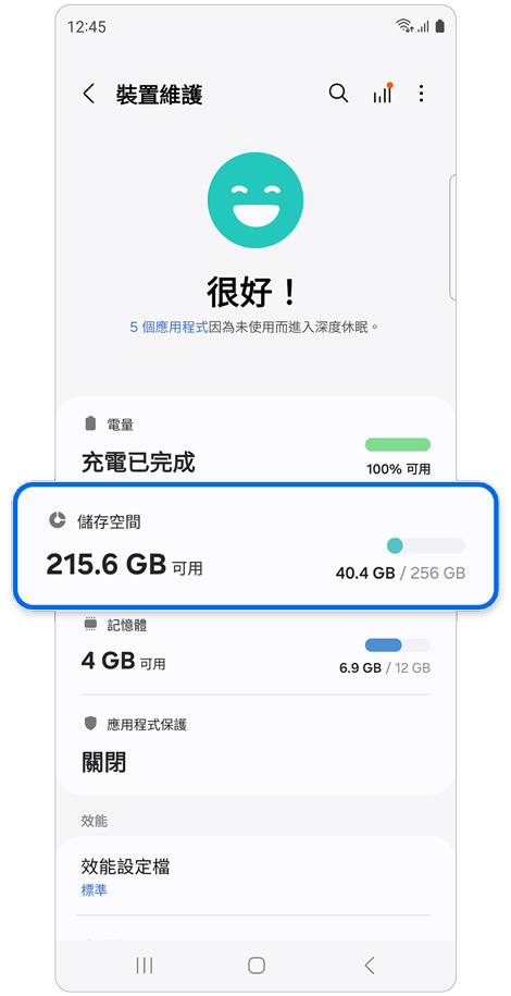 釋放一些儲存空間可以提升您的裝置效能。查看「裝置維護」中需要清除的檔案和應用程式,然後手動刪除。