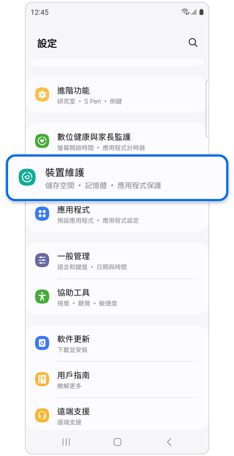 裝置維護使您能夠檢查記憶體的使用情況並停止背景應用程式,透過釋放記憶體來助您的裝置運行順暢。